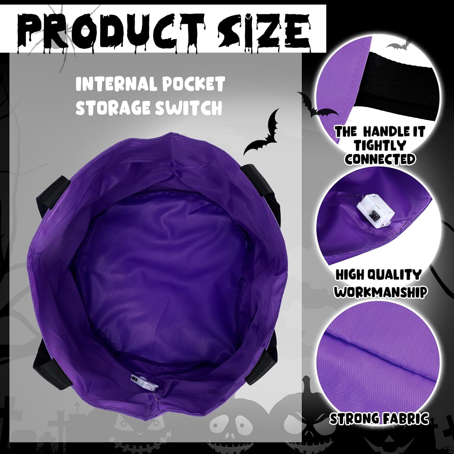 Spacious 9.8″ × 10.4″ LED pumpkin bags hold all the treats—and then some.