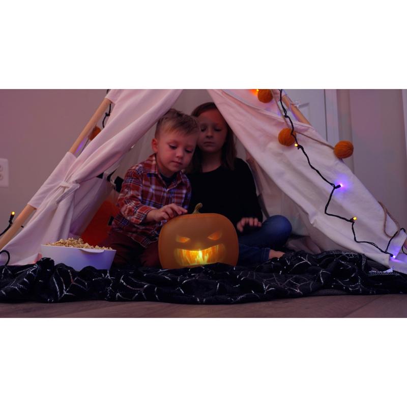 No carving, no mess, no hassle. Just plug in & watch your pumpkin come alive all night long.