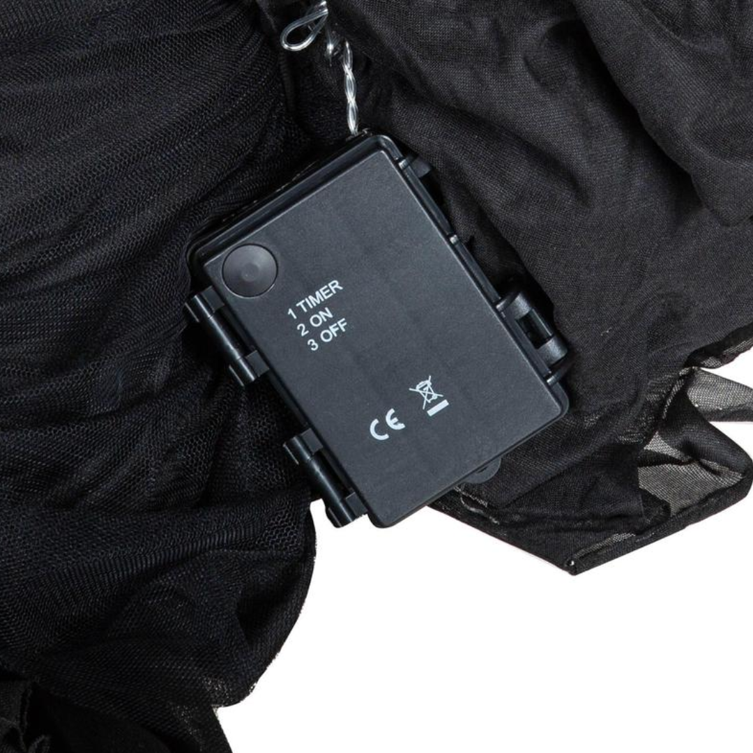 You get a witch stake decorations (5.6 ft tall each), ground stakes for setup, and a waterproof battery box with built-in timer (batteries not included).